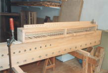 Die Pedalwindlade und die Pfeifenstöcke sind fast fertig.