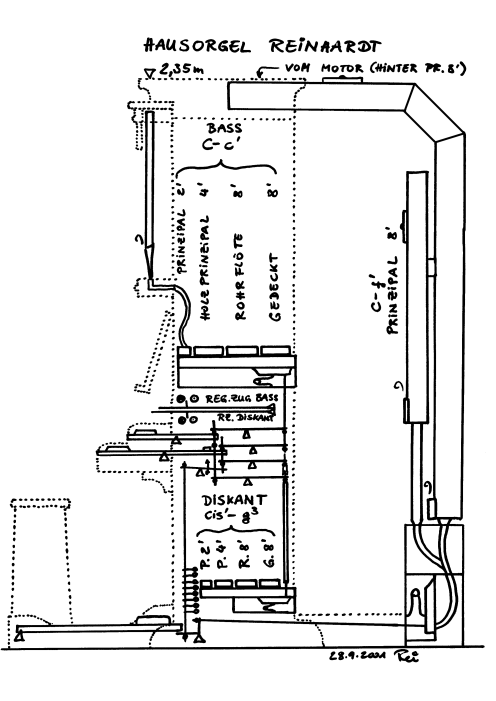 Baß und Diskant auf getrennten Windladen übereinander.
